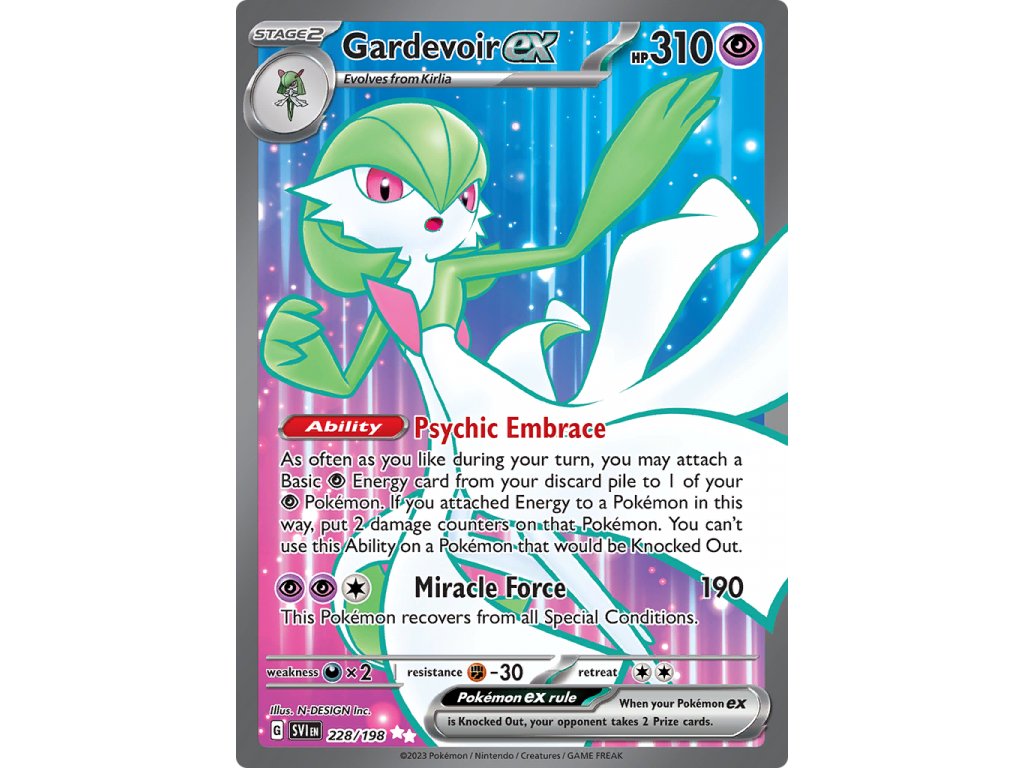 Pokémon karta Gardevoir EX (SVI 228) ze základní edice Scarlet & Violet