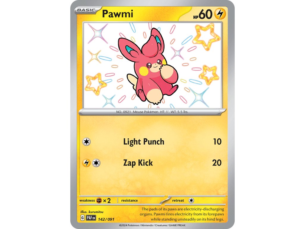 Pokémon Karta Pawmi (PAF 142) edice Scarlet & Violet: Paldean Fates.