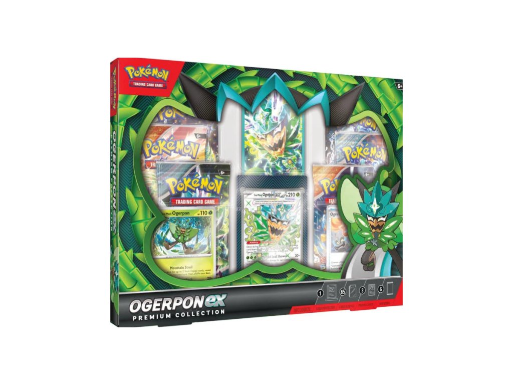 Pokémon TCG: Ogerpon ex Premium Collection přináší unikátní promo kartu Ogerpon ex, sběratelskou jumbo kartu a několik booster balíčků pro rozšíření vaší kolekce. Skvělá volba pro hráče i sběratele, kteří chtějí posílit svůj balíček a získat exkluzivní karty. Součástí je také kód pro online hru Pokémon TCG Live.