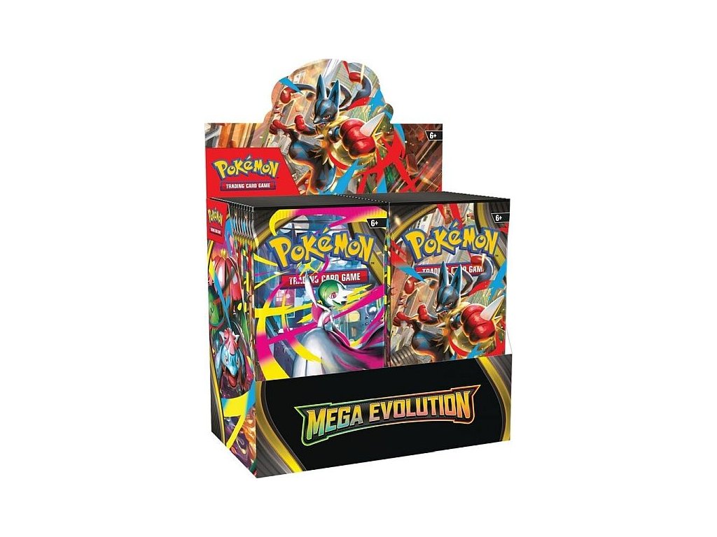 Sealed boster box obsahující 36 jednotlivých booster balíčků z nové řady Mega Evolution
