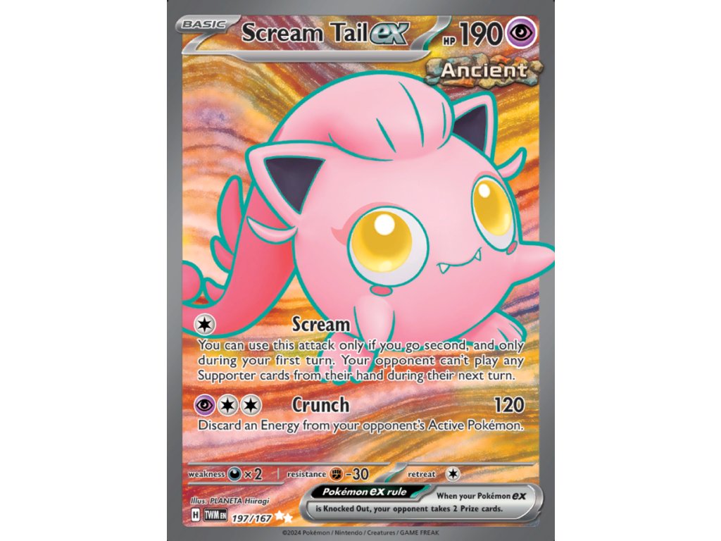 Pokémon Scream Tail ex (TWM 197) z edice Scarlet & Violet: Twilight Masquerade.