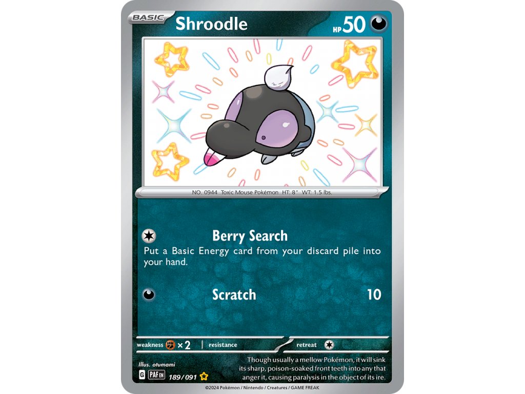 Pokémon Karta Shroodle (PAF 189) edice Scarlet & Violet: Paldean Fates.