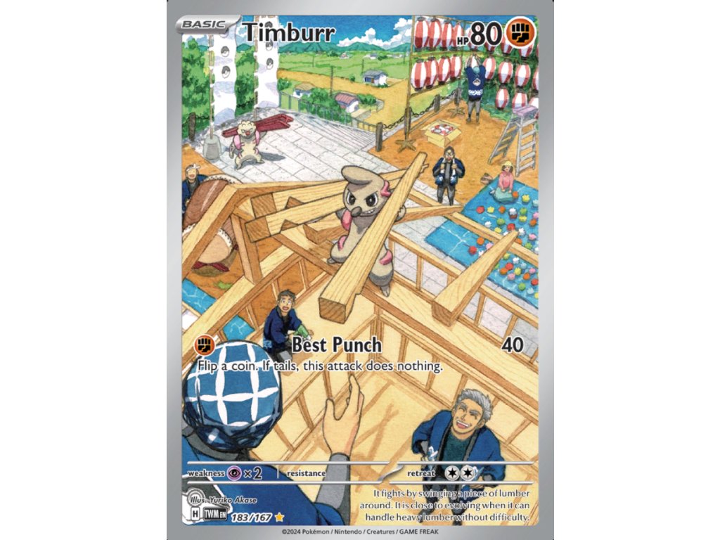 Pokémon Timburr (TWM 186) z edice Scarlet & Violet: Twilight Masquerade.